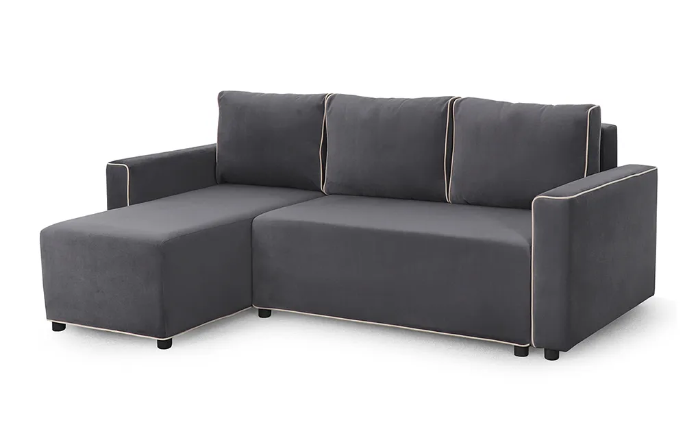 Модели из каталога «Мебельград» имеют модульную конструкцию. Они включают два прямых элемента разной длины и угловую часть. Сборка выполняется на левую или правую сторону — выбор зависит от обстановки гостиной.