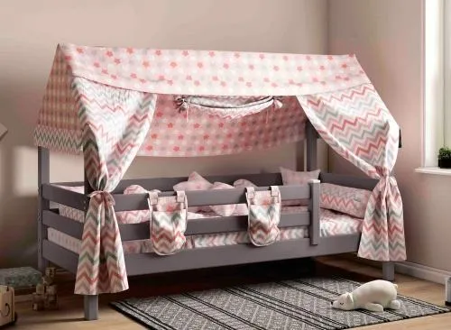 Все кровати «Соня» можно комплектовать аксессуарами из текстиля. Балдахин для кровати позволит создать ребенку уютный уголок, где можно как играть, так и хранить игрушки.