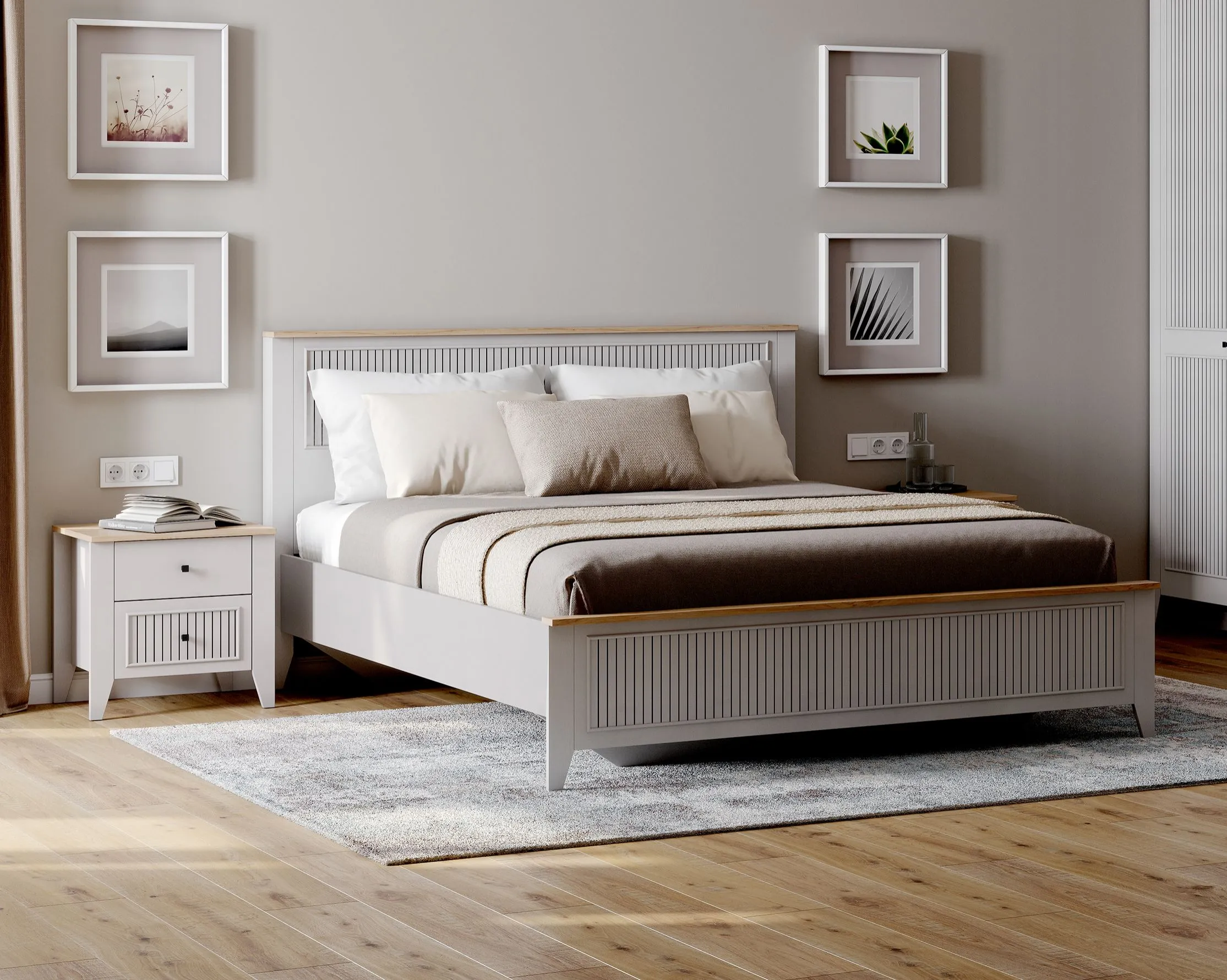 Спальня в цветовом решении "Персидский жемчуг/ Дуб натуральный светлый" придаст интерьеру воздушность, ощущение нежности и легкости, наполнив спальную комнату светом.