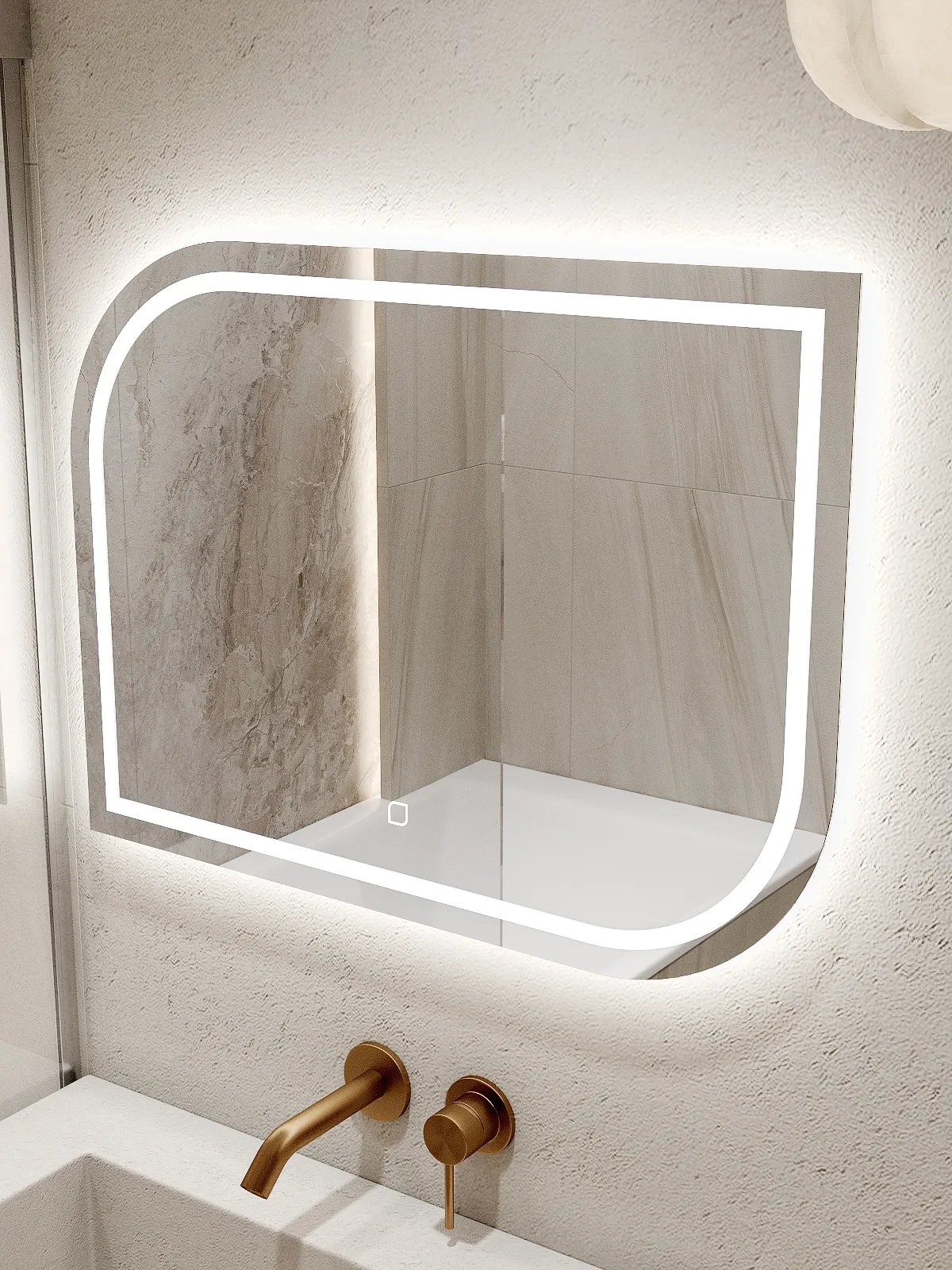 пескоструйная обработка в виде полосы шириной 15 мм, повторяющая контур зеркала